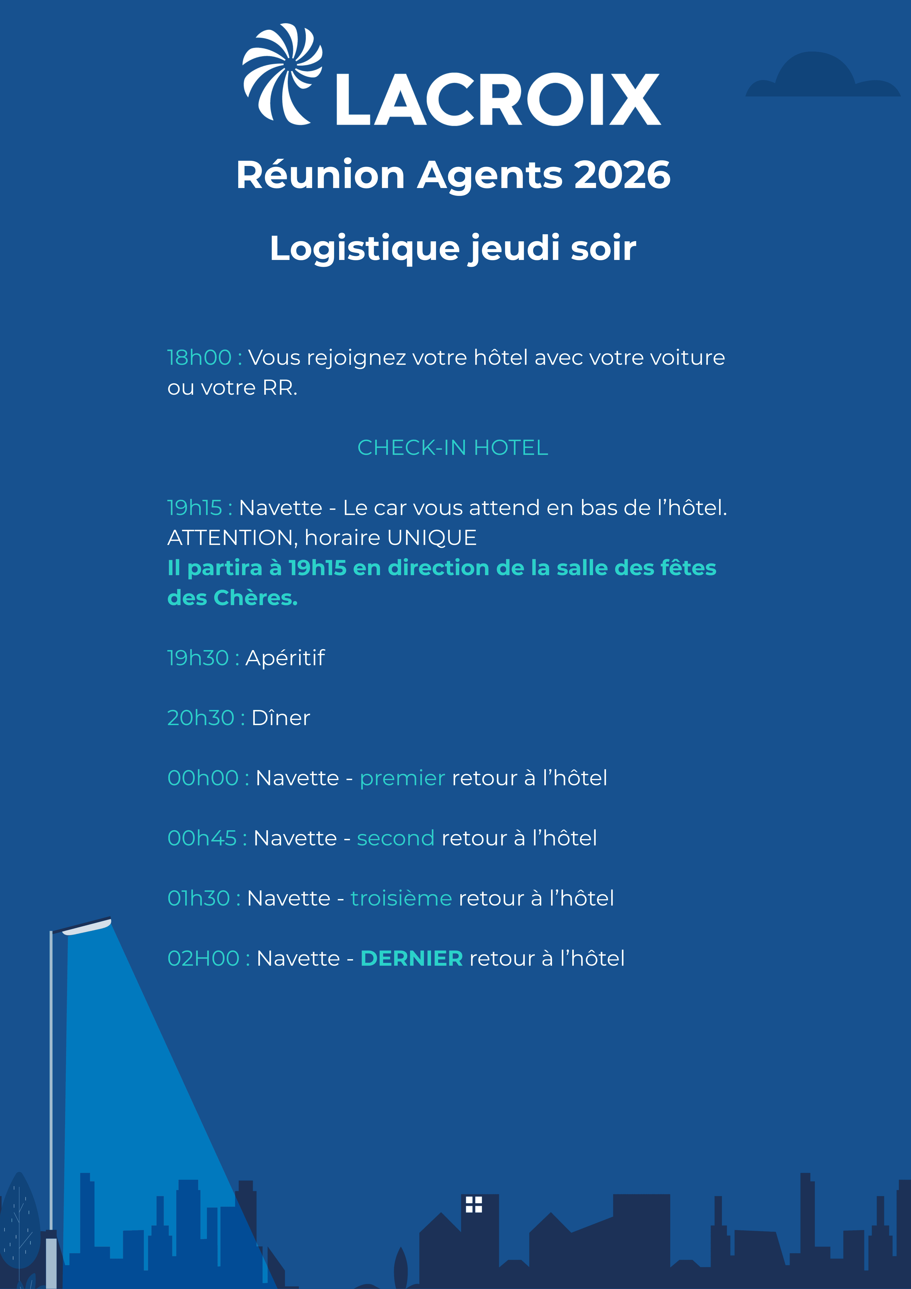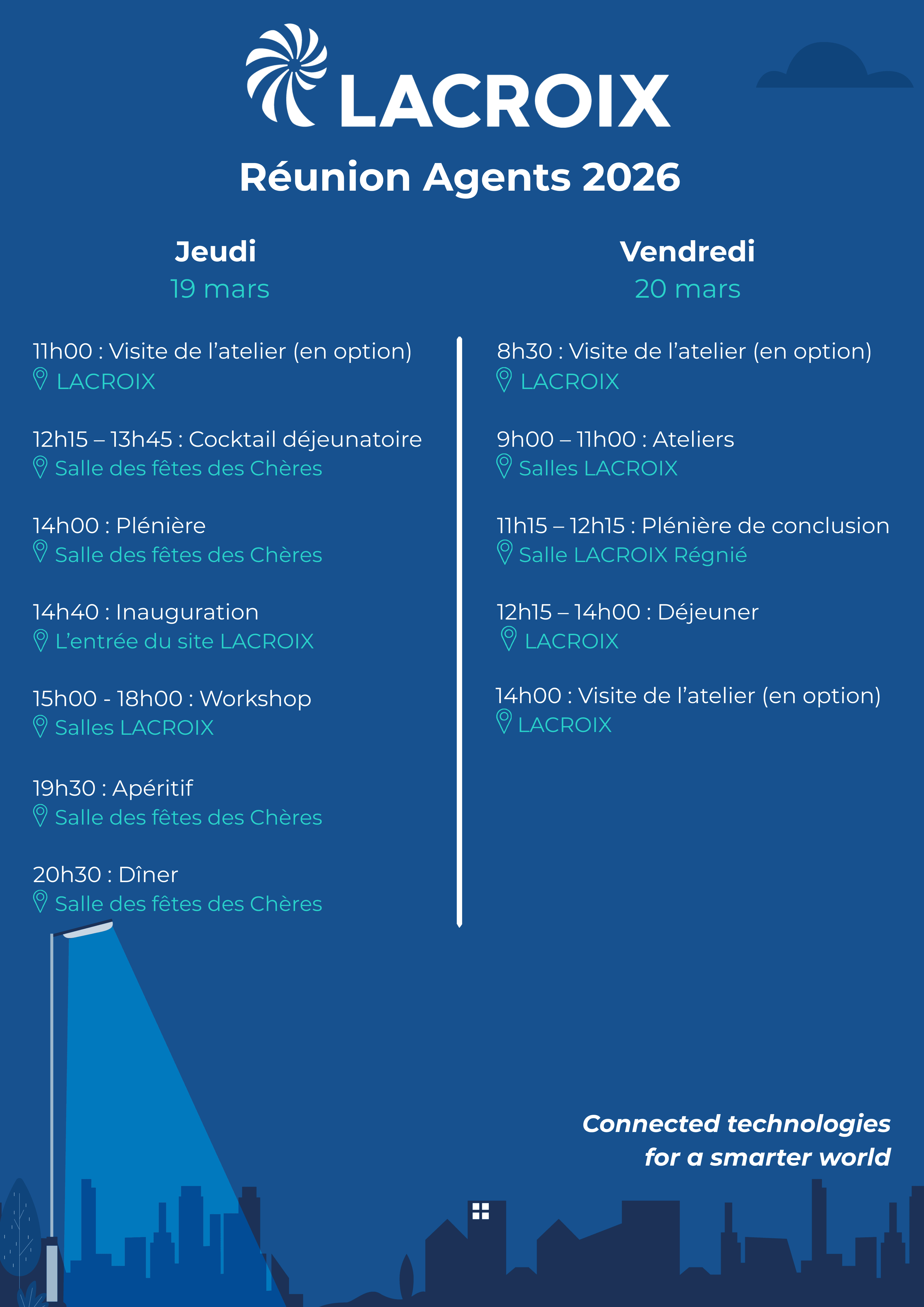 Home Bienvenue à la réunion Agents LACROIX 2026 Bienvenue à la réunion Agents LACROIX 2026 Notre programme 😊😊😊