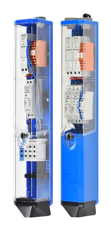 The junction boxes Dynapak is designed for masts with a minimum internal diameter of 84 mm, allowing connection of up to 2 x 25 mm² power cables or 3 x 16 mm² cables with 2 outlets for lighting cables. It offers flexible installation thanks to a removable, height-adjustable terminal support. It also features a transparent top cover for easy access to protections and secure maintenance. Available in versions with bottom or top lamp output, it also integrates features such as DDA protection and remote management via the TNX24 management node.