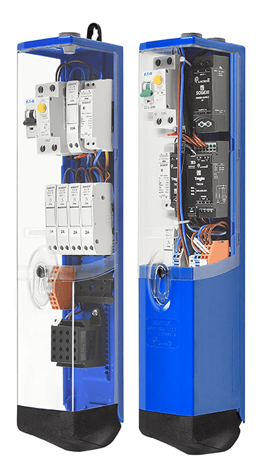 The Citypak is a junction box designed for smart lighting, specifically adapted to masts with a minimum internal diameter of 84 mm and reduced height. It can be used to connect up to 2 x 25 mm² cables or 3 x 16 mm² cables, while integrating up to four essential functions: connection, protection, management and detection. Its long, high, transparent cover makes it easy to see where the protection is located, while its tool-free, adjustable fixing system ensures fast, safe installation.