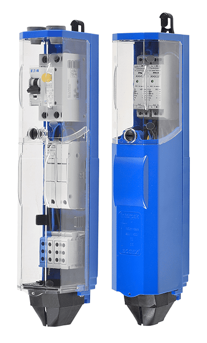 The Interpak is a junction box designed for masts with a minimum internal diameter of 110 mm, offering maximum capacity with its three levels. It allows the connection of up to 3 x 35 mm² network cables or 4 luminaire cables and features modular functionality thanks to an additional intermediate support. Its removable terminal block system, easy access via independent covers and transparent top cover ensures fast, safe installation and maintenance.